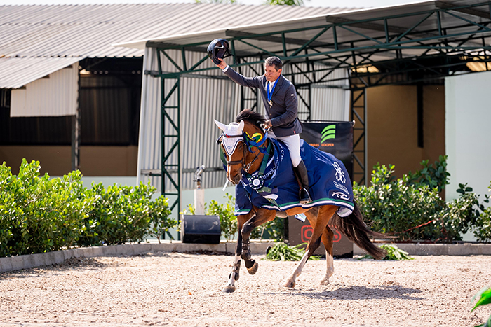 Vitor Alves Teixeira com Premier Mystic Rose (TE) (Tangelo van de Zuuthoeve x Calvaro Z), conjunto campeão sul-americano 2024 e que está na vice-liderança do Grand Slam Mystic Rose 2025 – 7 anos