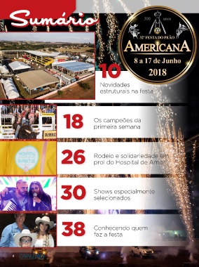 Sumário 10 Novidades estruturais na festa 18 Os campeões da primeira semana 26 Rodeio e solidariedade em prol do Hospital de Amor 30 Shows especialmente selecionados 38 Conhecendo quem faz a festa 8