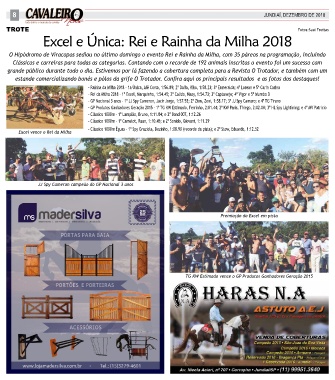 - Rei da Milha 2018 – 1º Excel, Marquinho, 1:54.45; 2º Calido, Naey, 1:54.73; 3º Captanejo; 4º Vigor e 5º Mumbo D